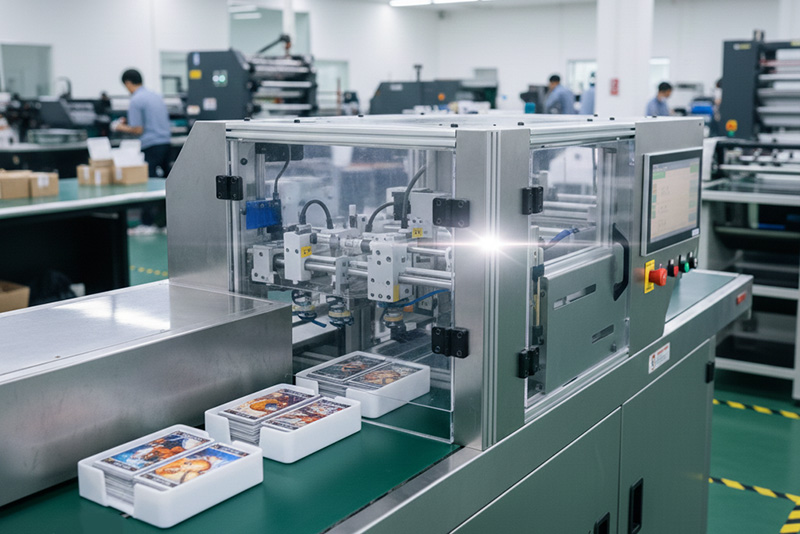 To achieve an amazing "hand-feel" and long-term durability, we use innovative finishing systems such as high-speed automatic UV coaters, hydraulic linen embossing machines, and precision thermal laminators. Whether we're producing the unique "Air-Cushion" texture for professional cards or putting scuff-resistant soft-touch and matte/gloss films to game boxes, our cutting-edge technology ensures rich color depth and a premium tactile experience that satisfies international quality standards.